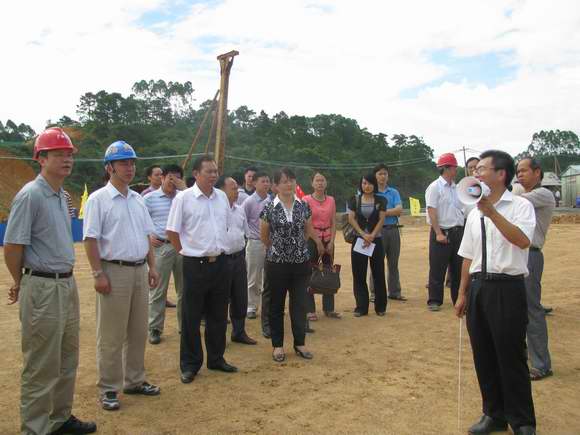 6月20日,自治區(qū)交通運輸廳副廳長李小林(左一)一行視察我公司參建的防城港至東興公路、欽州沙井大道、沿海高速公路改擴建茅尾海出口工程項目。