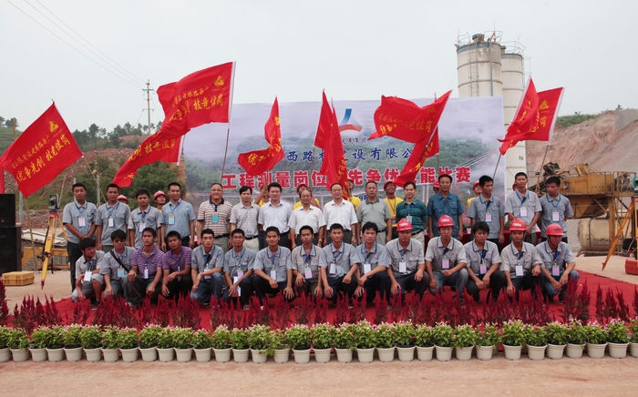 9月2日,廣西路橋建設(shè)有限公司在六欽1標(biāo)舉辦工程測量崗位創(chuàng)先爭優(yōu)技能比賽。廣西交通工會(huì)、海員工會(huì)主席黎建華,自治區(qū)交通運(yùn)輸廳直屬機(jī)關(guān)黨委專職副書記羅華芝,集團(tuán),公司黨委副書記張友坐等領(lǐng)導(dǎo)出席比賽開幕儀式并講話。