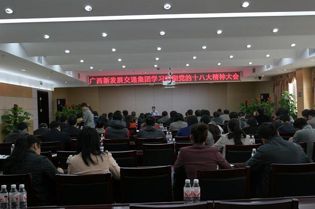 為深入學(xué)習(xí)貫徹落實(shí)黨的十八大會(huì)議精神,在組織廣大黨員干部職工參加支部集中學(xué)習(xí)、科室集中學(xué)習(xí)、業(yè)余自學(xué)的基礎(chǔ)上,12月6日上午,廣西新發(fā)展交通集團(tuán)黨委在南寧召開(kāi)了集中學(xué)習(xí)貫徹黨的十八大精神專(zhuān)題輔導(dǎo)大會(huì),集中聽(tīng)取了中國(guó)社會(huì)科學(xué)院黨組成員、副院長(zhǎng)兼當(dāng)代中國(guó)研究所所長(zhǎng)、黨組書(shū)記李捷同志關(guān)于《深入學(xué)習(xí)貫徹十八大精神》的視頻專(zhuān)題輔導(dǎo)講座。集團(tuán)公司領(lǐng)導(dǎo)班子成員、集團(tuán)公司機(jī)關(guān)全體人員,直屬各單位領(lǐng)導(dǎo)班子成員、黨委辦公室負(fù)責(zé)人,廣西公路橋梁工程總公司各分(子)公司黨政一把手共80余人參加了會(huì)議。講座從黨的十八大主題、科學(xué)發(fā)展觀、中國(guó)特色社會(huì)主義道路、全面建成小康社會(huì)的新論斷及關(guān)于黨的建設(shè)要求的總體布局等五個(gè)方面進(jìn)行了深入解答,讓廣大黨員干部職工受益匪淺。