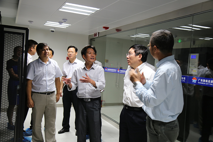 簽約儀式結(jié)束后,與會(huì)的各位領(lǐng)導(dǎo)共同參觀了我集團(tuán)公司控股企業(yè)——廣西捷通公司ETC中心機(jī)房,并聽取了技術(shù)人員對(duì)中心系統(tǒng)建設(shè)情況、設(shè)備安裝使用情況、機(jī)房運(yùn)轉(zhuǎn)流程、技術(shù)支持、監(jiān)控及操作、消防通道等情況的匯報(bào)。