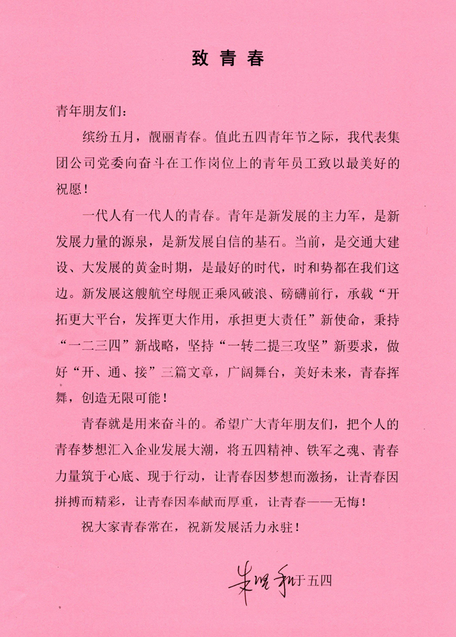 朱堅和書記傳達(dá)了習(xí)近平總書記在中國政法大學(xué)的重要講話精神,并宣讀了致青年朋友們的一封信——《致青春》,向奮斗在工作崗位上的廣大青年員工傳達(dá)了殷切期望與美好祝愿。信件原文如下: