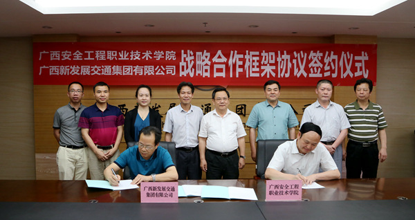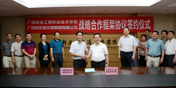 5月12日,自治區(qū)安全生產(chǎn)監(jiān)督管理局黨組書記黎志逘一行到訪集團公司,雙方就廣西安全工程職業(yè)技術(shù)學(xué)院與廣西新發(fā)展交通集團有限公司建立戰(zhàn)略合作伙伴關(guān)系達(dá)成共識,并簽訂了戰(zhàn)略合作框架協(xié)議。