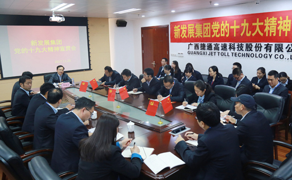 11月28日上午,集團(tuán)公司總會計師鄧遠(yuǎn)志來到捷通公司宣講黨的十九大精神,并開展工作調(diào)研。捷通公司黨總支班子及總部人員和南寧市自營網(wǎng)點(diǎn)負(fù)責(zé)人近70人參加了學(xué)習(xí)。