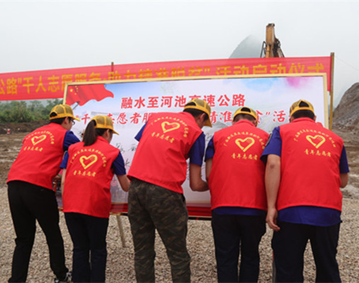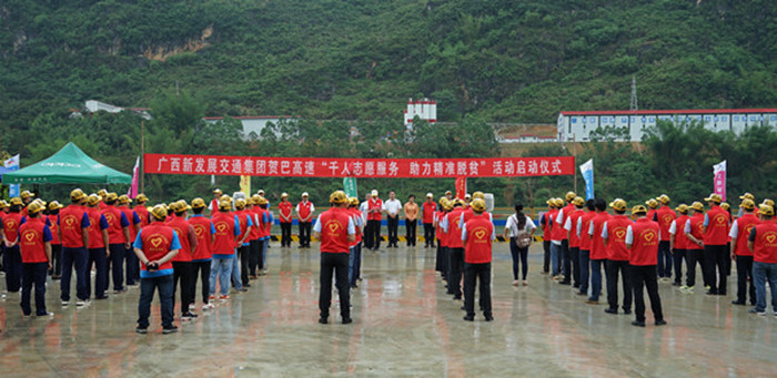 新恒通公司黨委書記、董事長賴水平介紹,集團(tuán)公司所建設(shè)的賀州至巴馬、融水至河池高速公路是廣西縣縣通高速公路重點(diǎn)工程,沿線大部分縣區(qū)仍屬貧窮縣。為響應(yīng)中央精準(zhǔn)扶貧和建設(shè)美麗中國的號召,擔(dān)負(fù)起國企的社會責(zé)任,新恒通公司組織全線參建單位成立青年志愿者服務(wù)隊(duì),結(jié)合項(xiàng)目實(shí)際,從2018年1月至2020年12月在賀巴、融河等高速公路全線范圍內(nèi)開展為期三年的“千人志愿服務(wù),助力精準(zhǔn)脫貧”活動。