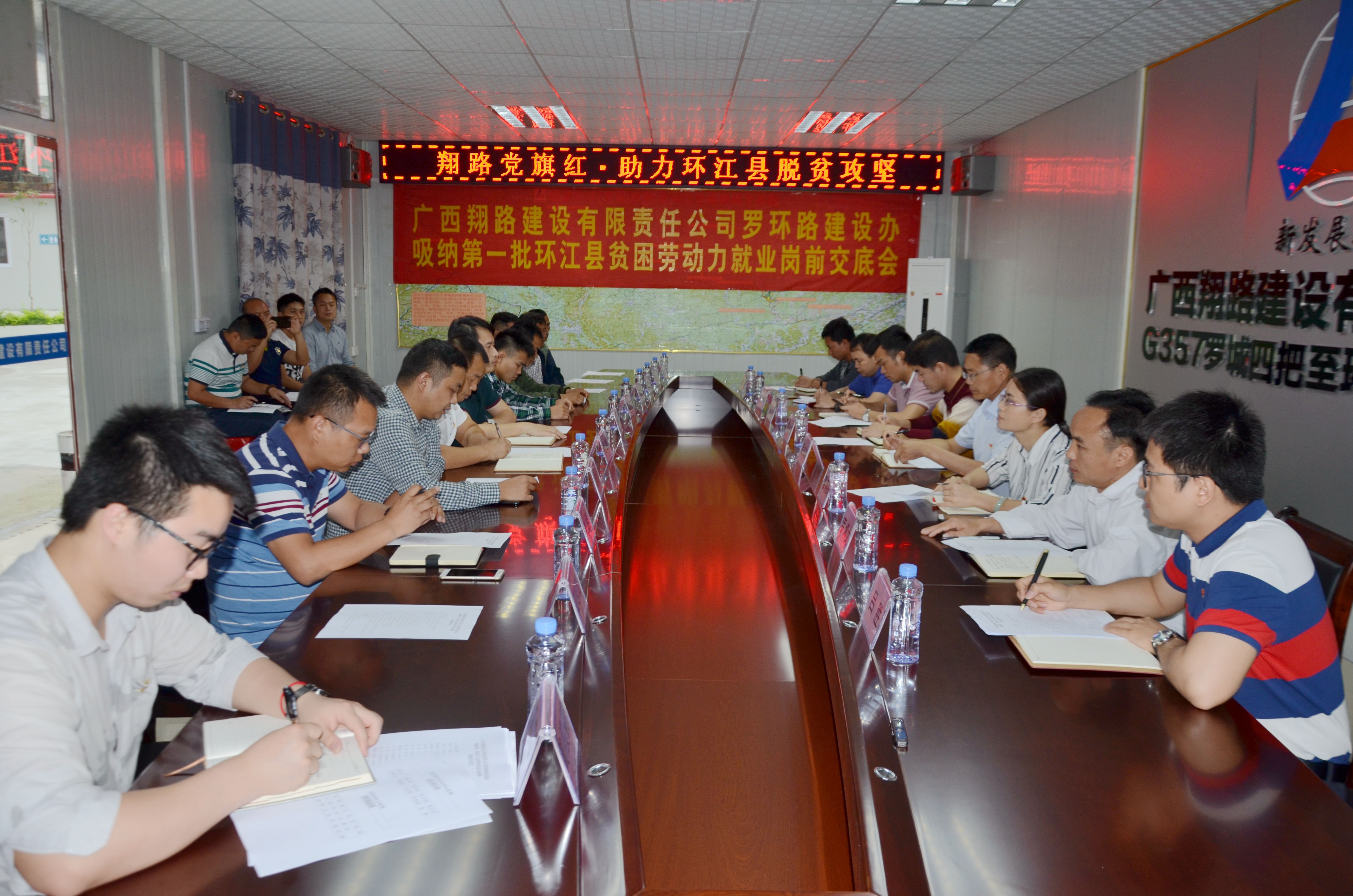 5月9日,廣西新發(fā)展交通集團(tuán)翔路公司在羅環(huán)路召開吸納環(huán)江縣貧困勞動力就業(yè)崗前交底會,第一批5名貧困勞動力正式上崗,安排到該公司路網(wǎng)項(xiàng)目就業(yè)。經(jīng)過前期大量充分細(xì)致的調(diào)研準(zhǔn)備工作后,廣西新發(fā)展集團(tuán)路網(wǎng)項(xiàng)目“黨建+就業(yè)扶貧”工作取得了階段性成果,惠及環(huán)江貧困勞動力。