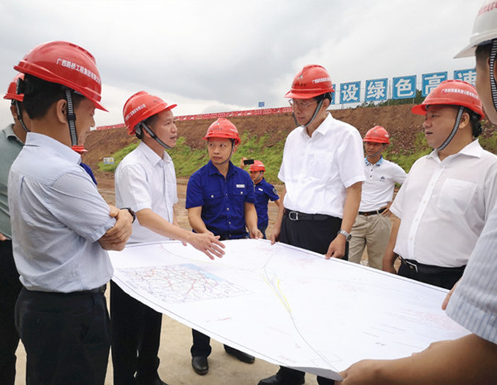 7月13日下午,自治區(qū)副主席費志榮到賀巴高速鐘昭段同古互通調(diào)研,賀州市市長林冠,自治區(qū)工業(yè)和信息化委巡視員彭健銘、自治區(qū)交通運輸廳副廳長王劼耘等同志隨行調(diào)研。集團公司黨委書記、董事長朱堅和,集團公司副總經(jīng)理李德智,新恒通公司領(lǐng)導藍日彥、馮學茂等陪同。