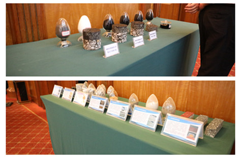 圖為研討會期間橡膠瀝青等新材料展示