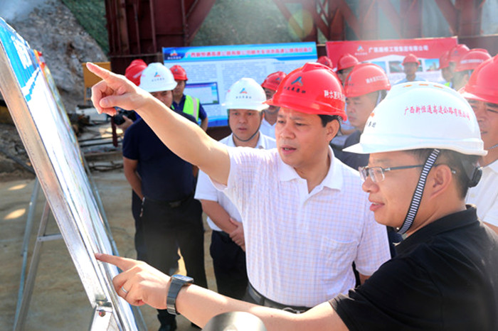 9月21日上午,廣西壯族自治區(qū)黨委常委、政法委書記黃世勇到融河高速調研,河池市市長唐云舒,政法委書記黃光華參加調研。